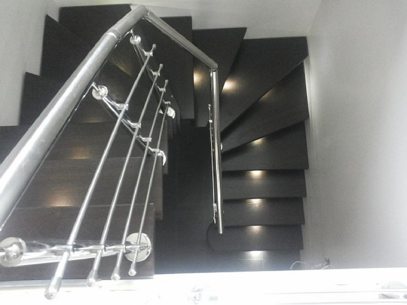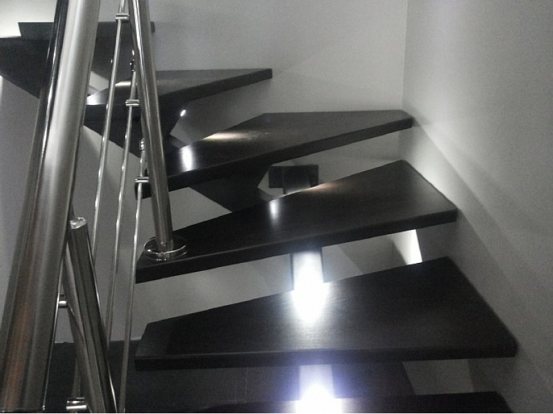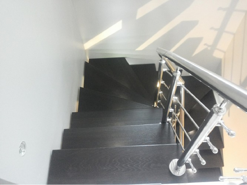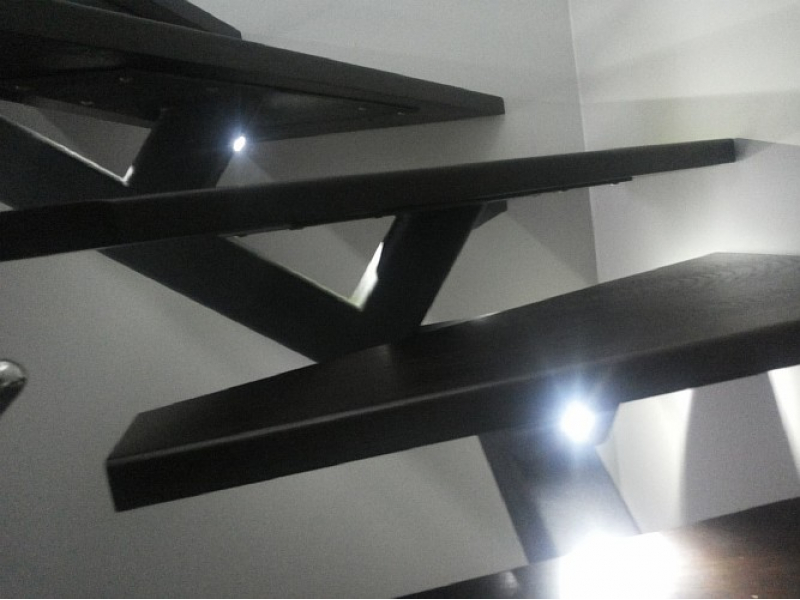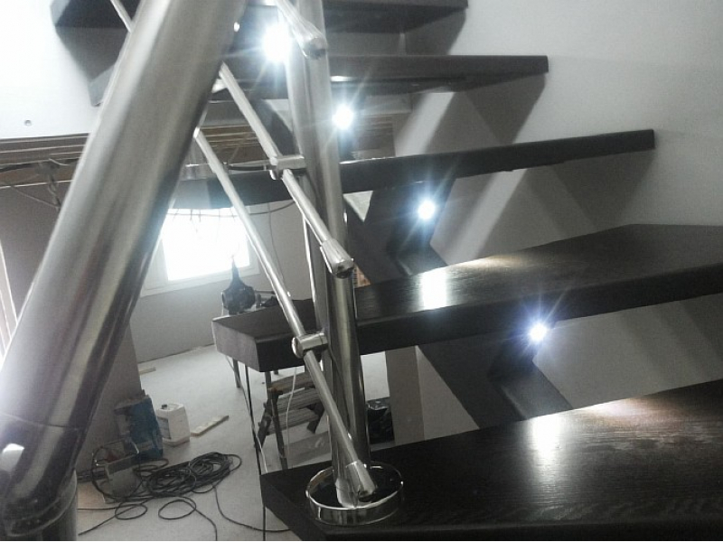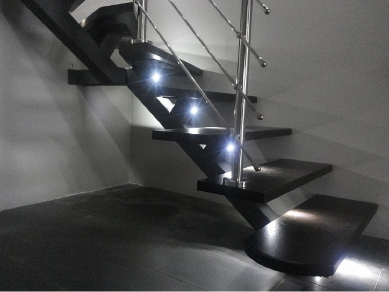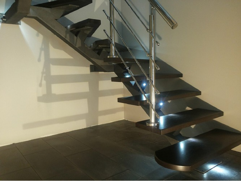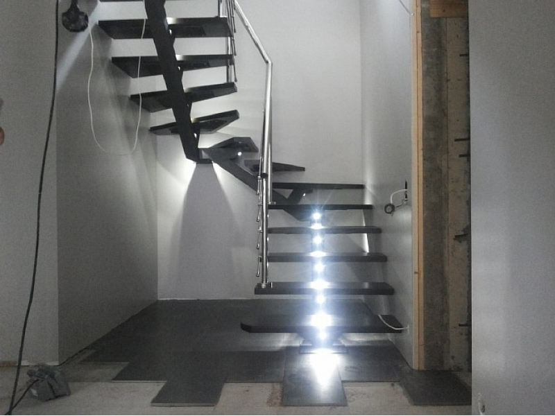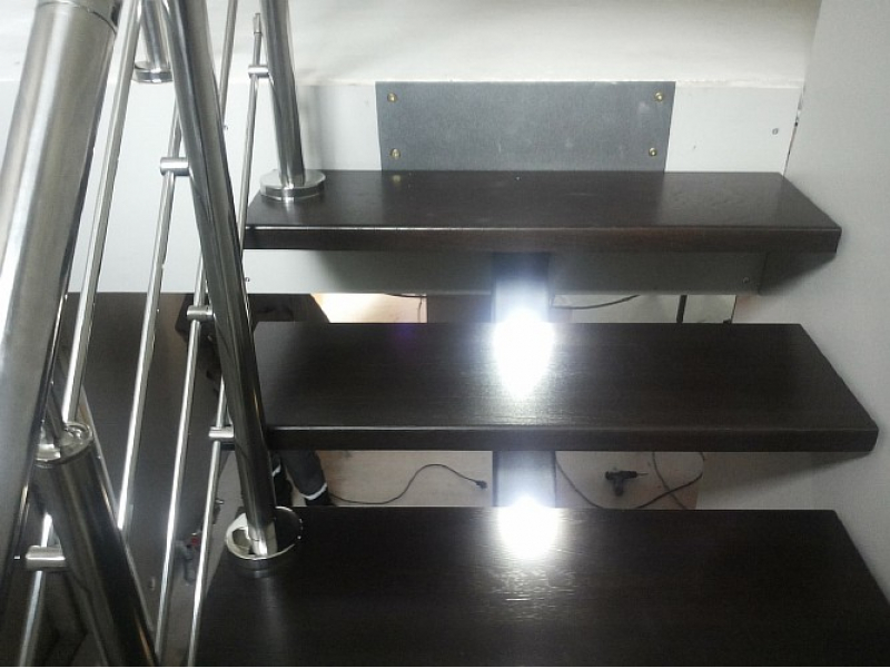 Лестница с подсветкой, дубовыми ступенями